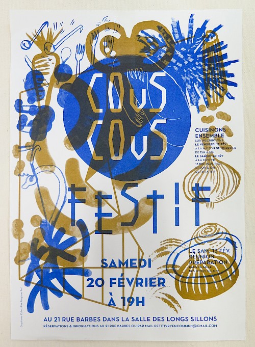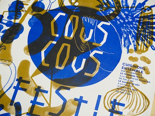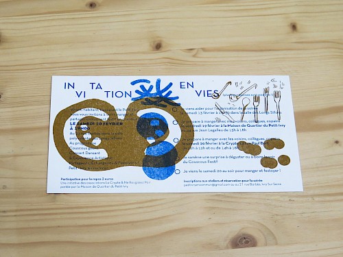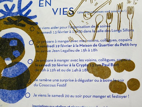 Ici sont mis en avant les réalisations conçues pour les initiatives portées par le collectif et la Crypte au sein du quartier.