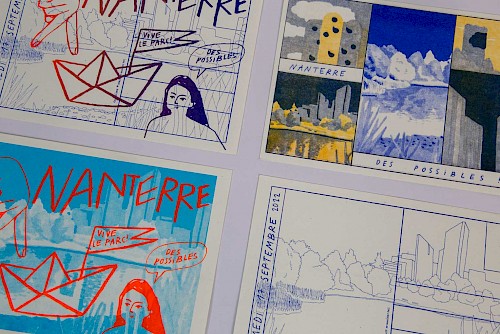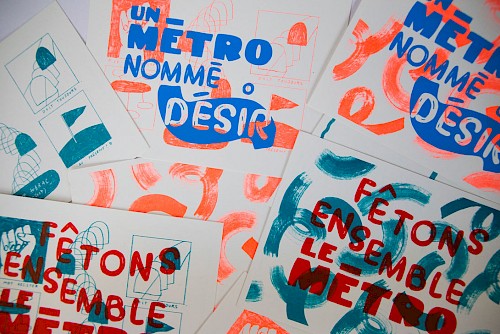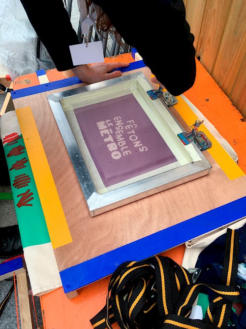 Nous sommes venus sur 3 événements : à Nanterre pour la “Fête de la vie associative”, pour “Ivry en fête” à Ivry-sur-Seine et “La fête du métro” à Bagneux, où nous avons déambulé avec notre dispositif des ouvreuses pour pouvoir imprimer des visuels en sérigraphie et les distribuer aux personnes participants aux événements.