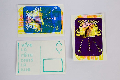 Dans le cadre de différents événements portés par des municipalités dans l’espace public, notre collectif est intervenu pour imprimer en sérigraphie en direct des objets papiers.