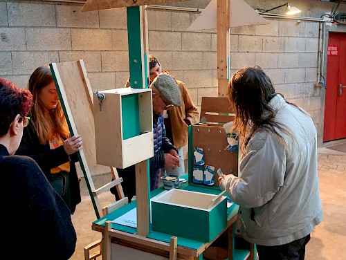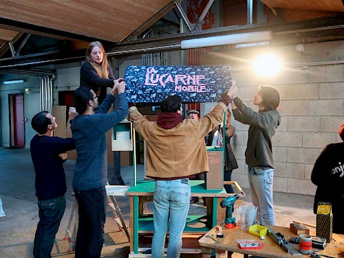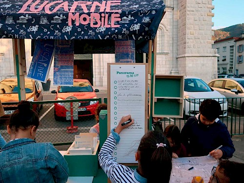 Dans le cadre d’une résidence artistique d’une semaine menée à Saint Claude, nous avons été invité·es par la Fraternelle pour concevoir et fabriquer un dispositif de récoltes interactif urbain pour la réalisation du journal de quartier la Lucarne. Ce dispositif permettait de déambuler dans l’espace public et d’aller à la rencontre des habitant·es afin de pouvoir récolter des histoires qui feront parties de « la Lucarne », journal de quartier à Saint-Claude.