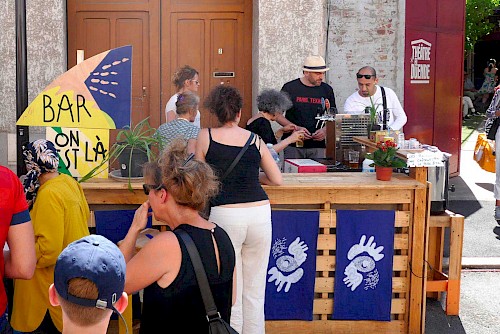 Pour cet événement, nous avons conçu et réalisé un habillage scénographique pour la rue afin de pouvoir investir l’espace public.