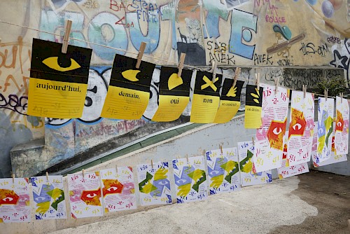 Durant 3 demies journées le collectif est venu interroger les usagers du square Léon sur leur rapport au genre dans l’espace public. A l’aide d’un mini-jeu de plateau et d’affiches interrogatives les participants témoignaient de leur passage et usage de cet espace voué à évoluer dans les prochaines années.