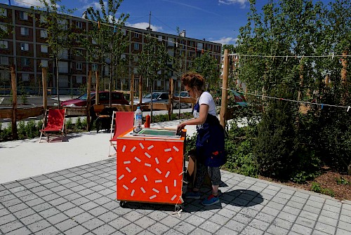 Public 30 à 40 personnes participants par session, intervention située dans l’espace public pendant 2 journées.