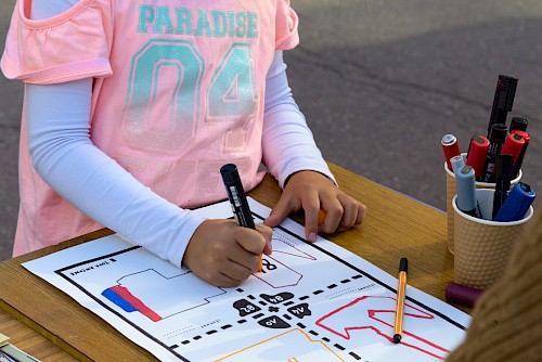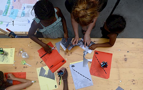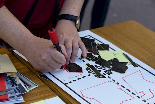 Ce projet de signalétique a démarré en juillet 2017 avec une série de joyeux ateliers dans l’espace public à Villa d’Este, Paris 13. À partir de photographies liées à la cité, nous avons fabriqué des pictogrammes représentant les tours et certains points remarquables, afin de constituer une cartographie représentatif de l’ensemble urbain ainsi que des panneaux directionnels qui l’accompagnent. Ce Protocole d’Interprétation du Territoire en Agglomération Urbaine est l’aboutissement d’un chantier participatif avec des habitants du quartier et le soutien de l’EDL, et de la ville de Paris. Merci au centre social 13 pour Tous pour leur aide précieuse et aux syndicats de copropriétés pour leur autorisation à intervenir sur le territoire.