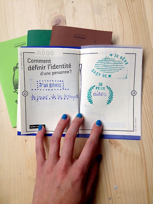 Nous avons proposé à chaque participant de s’interroger sur les différentes composantes de son identité personnelle en s’appuyant sur les collections du Musée de l’Histoire de l’Immigration. Ainsi nous avons articulé visites commentées et phases de création et de réflexion pour permettre à chacun de se (RE)définir en tant qu’individu dans le collectif, à travers la construction de son passeport personnel.