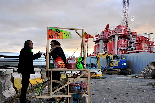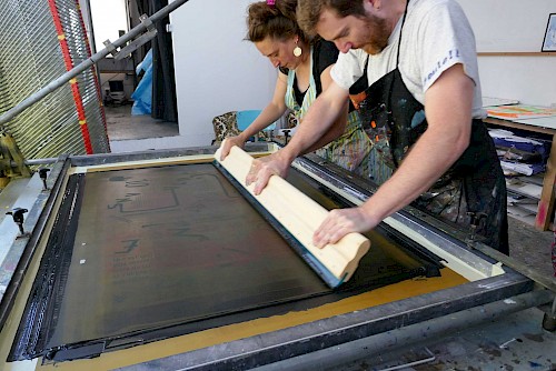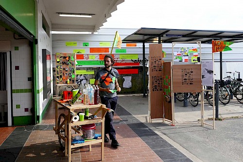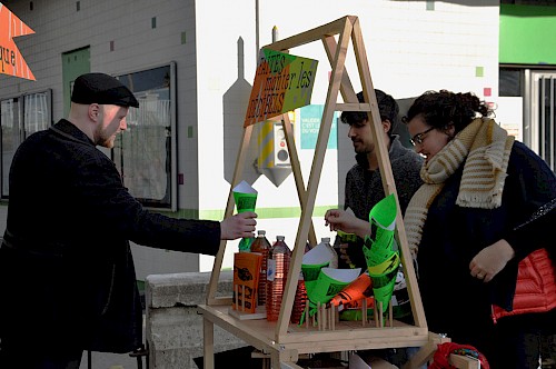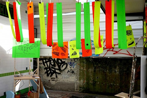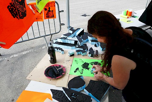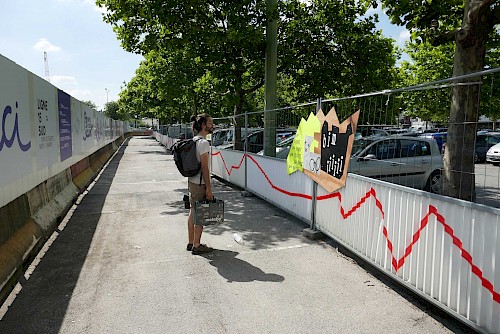 chantier participatif, micro-trottoir, installation signalétique, impression sérigraphie