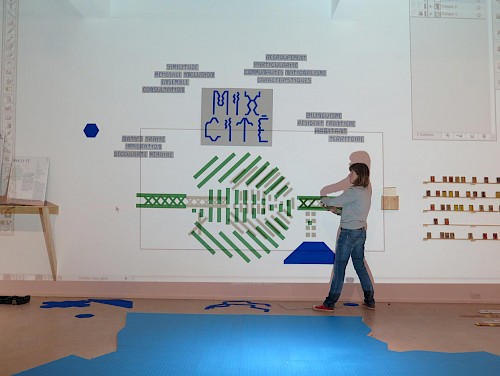Par le biais d’outils créés par notre collectif, nous avons donc voulu développer un processus ludique de création, valorisé par le résultat final d’exposition, afin de mettre en exergue au travers du Mix Cité les représentations personnelles de ces réflexions communes.