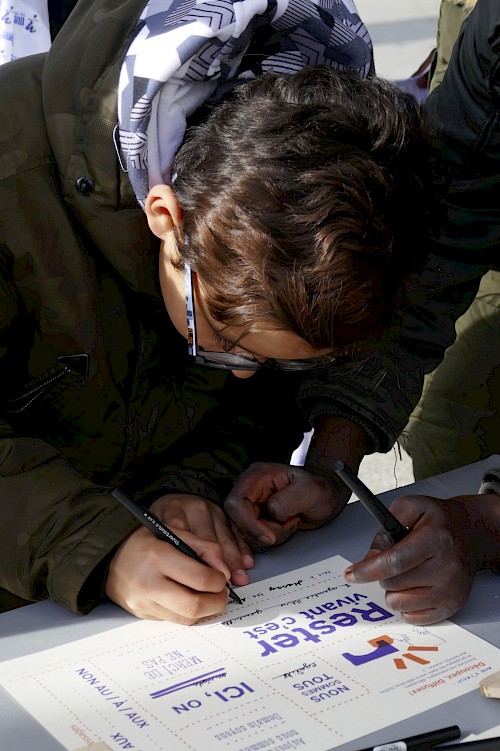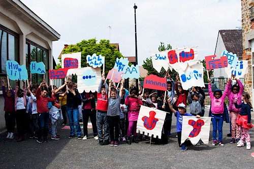 Avec la collaboration des élèves et professeurs des écoles élémentaires Deloges (CE2) et Etienne Tailhan (CP/CE1), de l'école maternelle Dr Morère, de l'Accueil de Loisir Henri Wallon, du Centre Social APMV, et de la Maison de Quartier Gérard Philippe.
