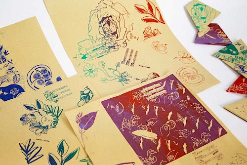 Ces petits sachets, imprimés à la main en sérigraphie, ont pour vocation d’accueillir les semences anciennes/paysannes partagées par les bénévoles du collectif et les usagers de la bibliothèque. Chaque groupe d’étudiant·es a développé un univers autour du jardin et de son imaginaire.