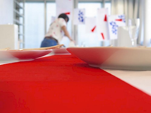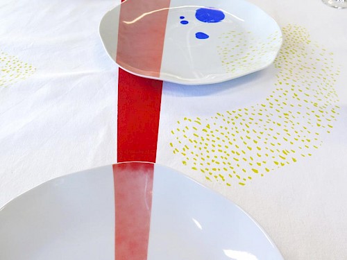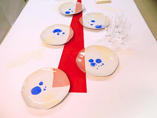 La mise en commun de ces motifs a servi de base pour l’impression sérigraphique sur le service vaisselle et la mise en situation.