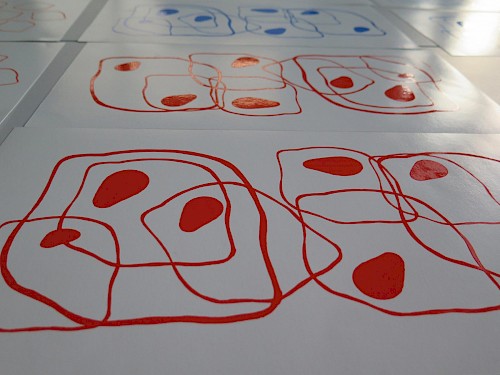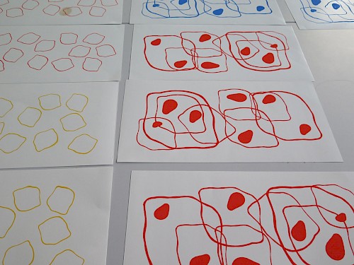 Ils ont conçu leurs motifs à l’aide d’outils graphiques mis à disposition par le collectif (tampons, peinture, encre, éléments naturels récoltés,...).