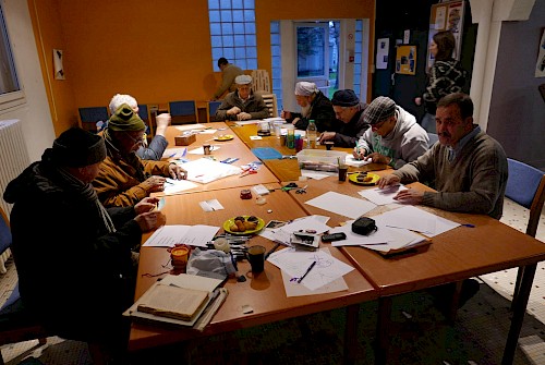 Au moyen d'une série de photographies distribuées à l'aveugle dans les deux groupes, des binômes se sont formés lors de la rencontre en fonction des images choisies. A partir de celles-ci, chacun a pu associer des objets personnels, raconter une histoire, dessiner un souvenir, et croiser son ressenti.