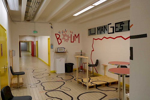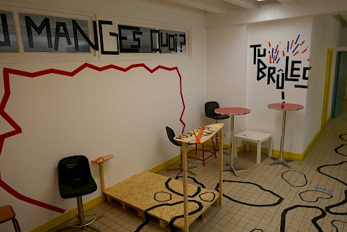 “Comment expérimenter différemment un espace traversé, sans fonction ni usage premier ? Un couloir, un escalier, une salle de repos. Comment détourner les usages ordinaires que l’on trouve dans les “passages”?”